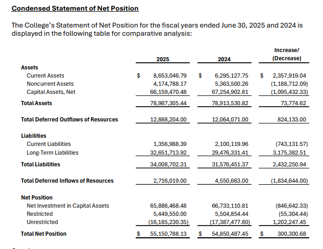 “Through careful fiscal stewardship, the College has maintained a strong financial position. Sound financial practices ensure the College remains within budget while still investing in students and community priorities. If necessary, adjustments to staffing or operations will be made to preserve financial stability.”